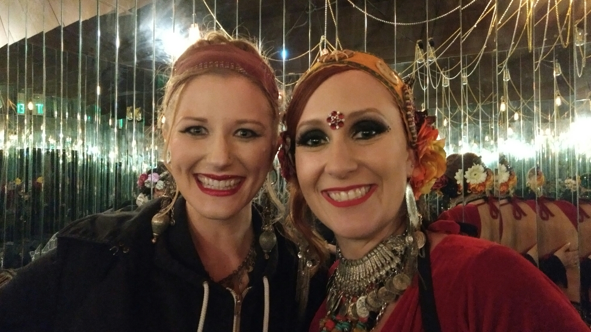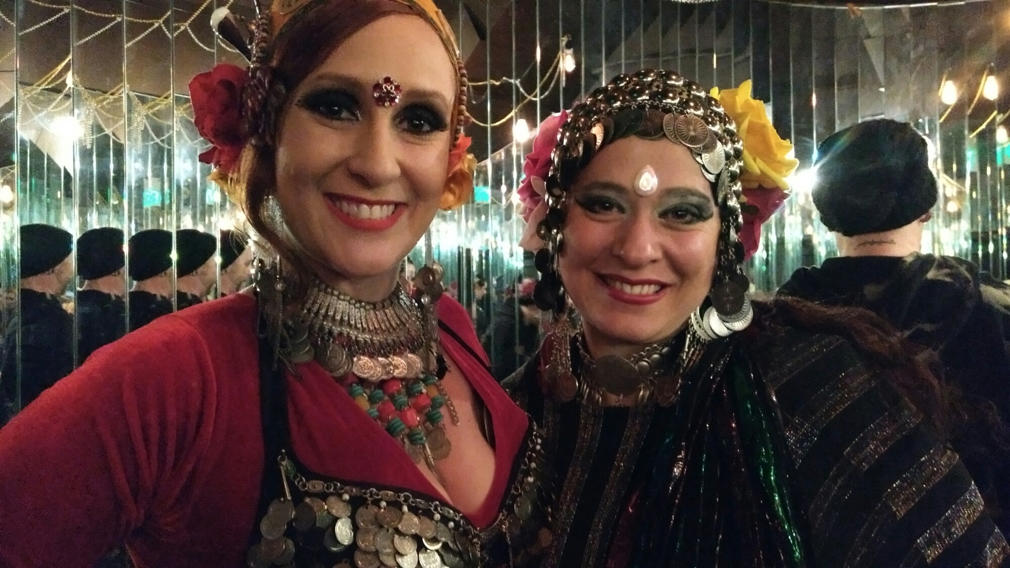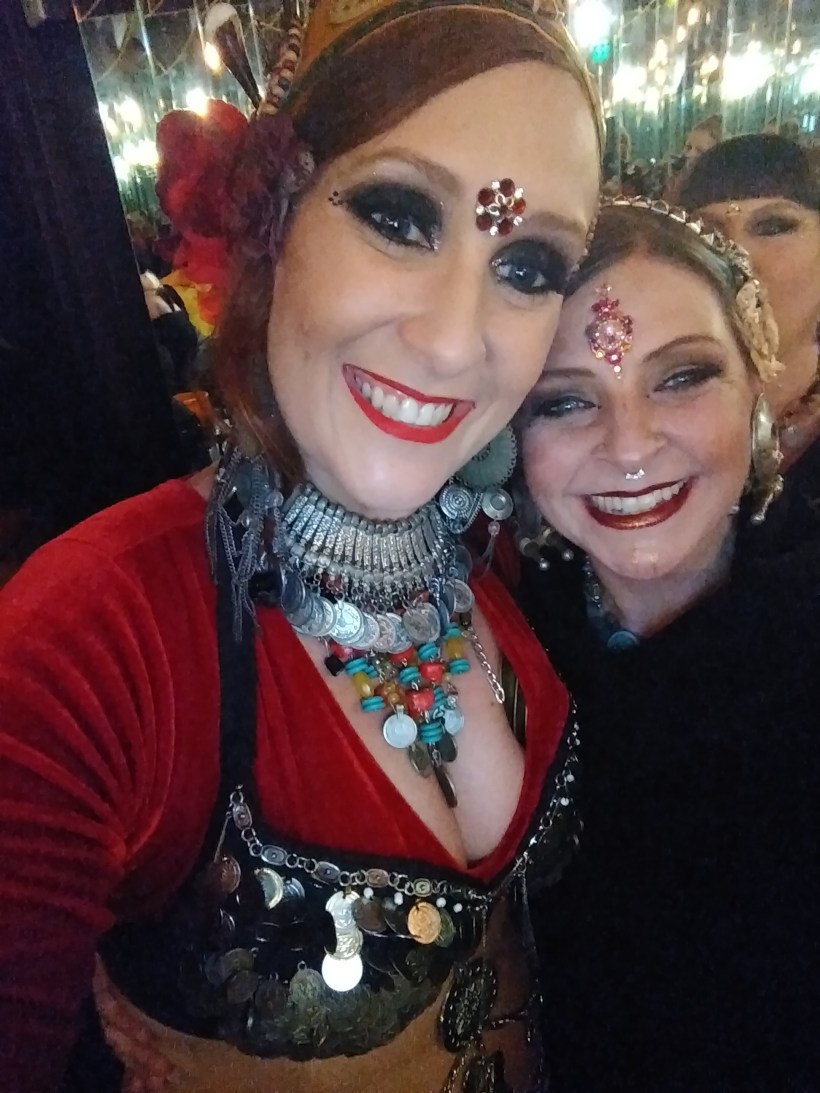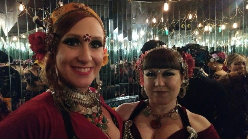 O local do evento é no bar F8 que fica na Folsom Street , Union Square. Um camarim revestido de espelhos e um ambiente pequeno e aconchegante onde as danças acontecem. Fui extremamente bem recebida por todos, mas o meu encanto ficou marcado ao conhecer a Terri pessoalmente. Uma mulher linda, simpática e divertida. Dancei com a norte americana, Becka Bomb. Uma mulher linda, simpática e que dança muito. Nos conheciamos apenas pelas redes sociais e quando apareceu a oportunidade, resolvemos juntar as “Bekas” nesta festa. Não tivemos a oportunidade de ensaiar antes, quando eu cheguei o show já estava para começar. O ATS® me conquista a cada prova que tenho de que o seu sistema unificado de improviso é a melhor escolha para juntar pessoas. O nosso dueto fluiu com conexão e alegria. Tivemos alguns errinhos durante a dança mas neste caso, são aqueles erros naturais de um improviso e de dois corpos que nunca tinham se visto e dançado antes. Foi um experiência incrível colocar o ATS em prática 100℅ improvisado. Sempre digo para minhas alunas que Flock of Birds, olho no olho, atenção, foco e simplicidade dos movimentos garantem o sucesso de momentos como este.