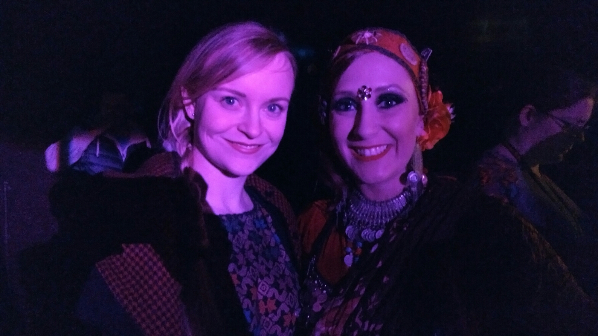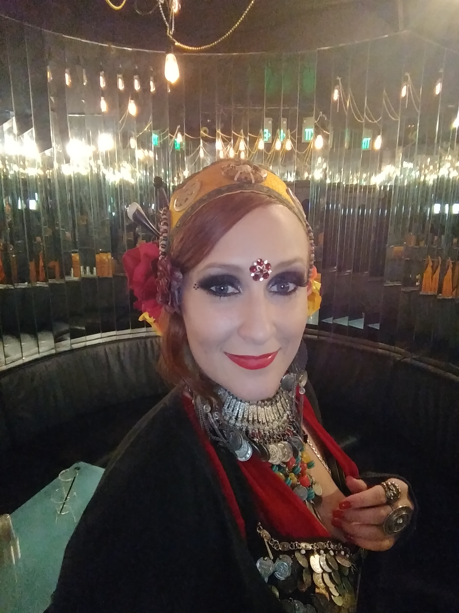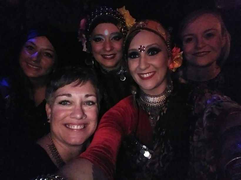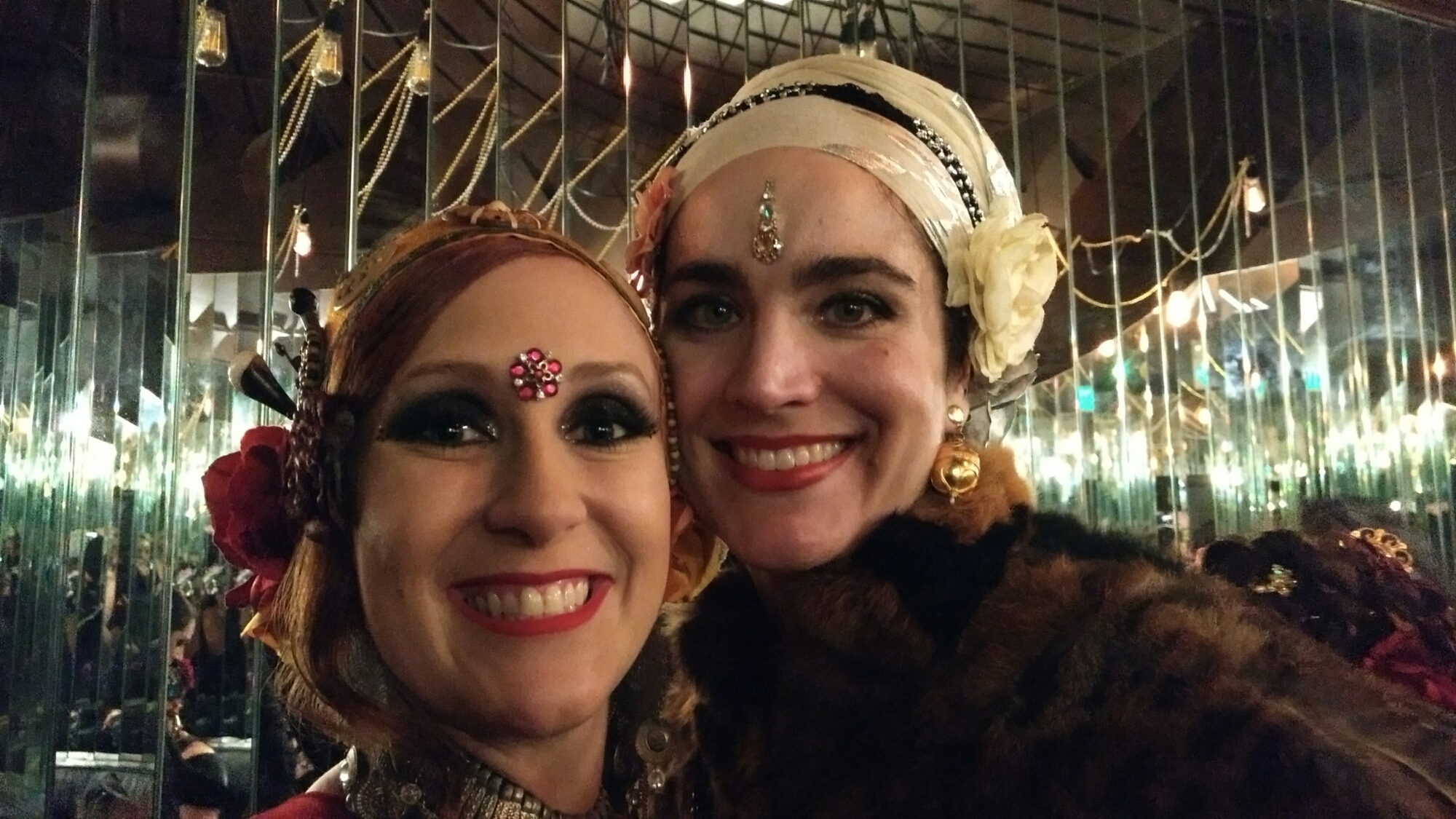O local do evento é no bar F8 que fica na Folsom Street , Union Square. Um camarim revestido de espelhos e um ambiente pequeno e aconchegante onde as danças acontecem. Fui extremamente bem recebida por todos, mas o meu encanto ficou marcado ao conhecer a Terri pessoalmente. Uma mulher linda, simpática e divertida. Dancei com a norte americana, Becka Bomb. Uma mulher linda, simpática e que dança muito. Nos conheciamos apenas pelas redes sociais e quando apareceu a oportunidade, resolvemos juntar as “Bekas” nesta festa. Não tivemos a oportunidade de ensaiar antes, quando eu cheguei o show já estava para começar. O ATS® me conquista a cada prova que tenho de que o seu sistema unificado de improviso é a melhor escolha para juntar pessoas. O nosso dueto fluiu com conexão e alegria. Tivemos alguns errinhos durante a dança mas neste caso, são aqueles erros naturais de um improviso e de dois corpos que nunca tinham se visto e dançado antes. Foi um experiência incrível colocar o ATS em prática 100℅ improvisado. Sempre digo para minhas alunas que Flock of Birds, olho no olho, atenção, foco e simplicidade dos movimentos garantem o sucesso de momentos como este.